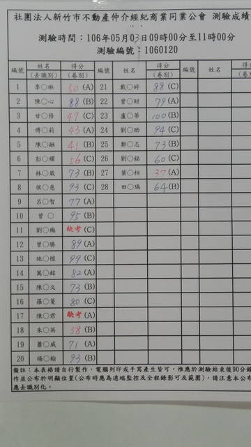 » 106年5月3日測驗成績公佈表
