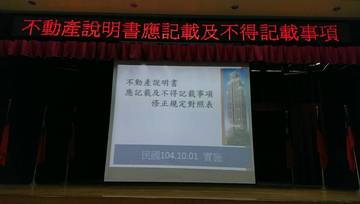 » 104年9月21日舉辦「新修正『不動產說明書應記載及不得記載事項』說分明」專題講座