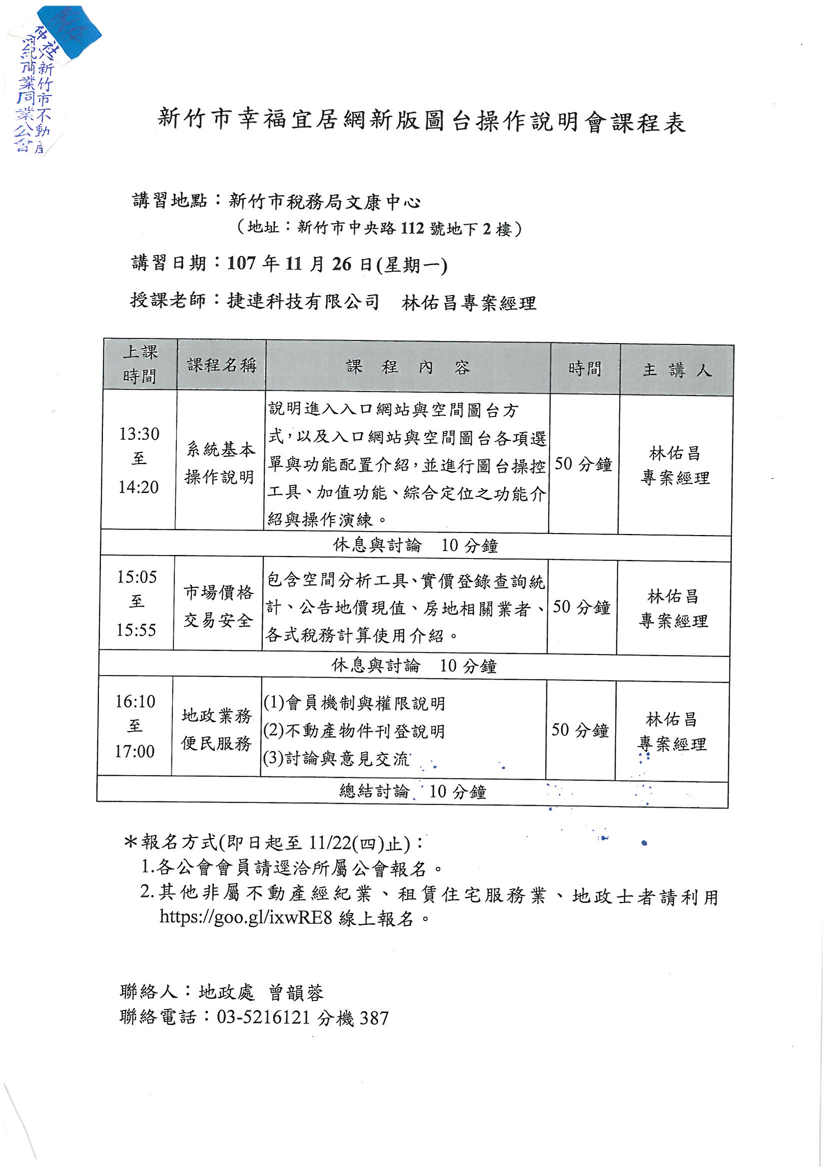 » 函轉市政府訂於107年11月26日(星期一)辦理「新竹市幸福宜居網新版圖操作說明會」,歡迎踴躍報名參加,敬請查照