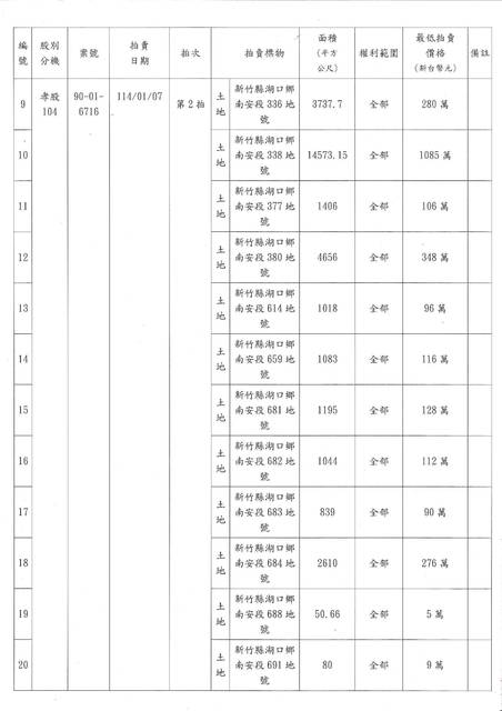 » 函轉法務部行政執行署新竹分署114年1月份之動產、不動產拍賣清冊全份,敬請會員踴躍參與投標競買.